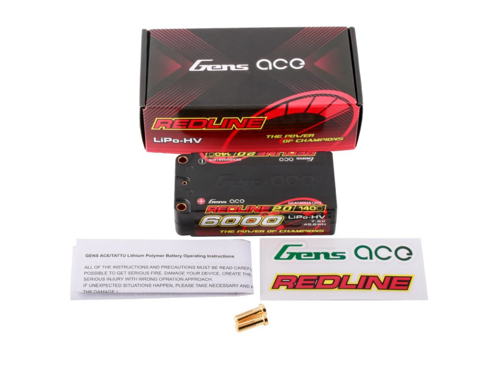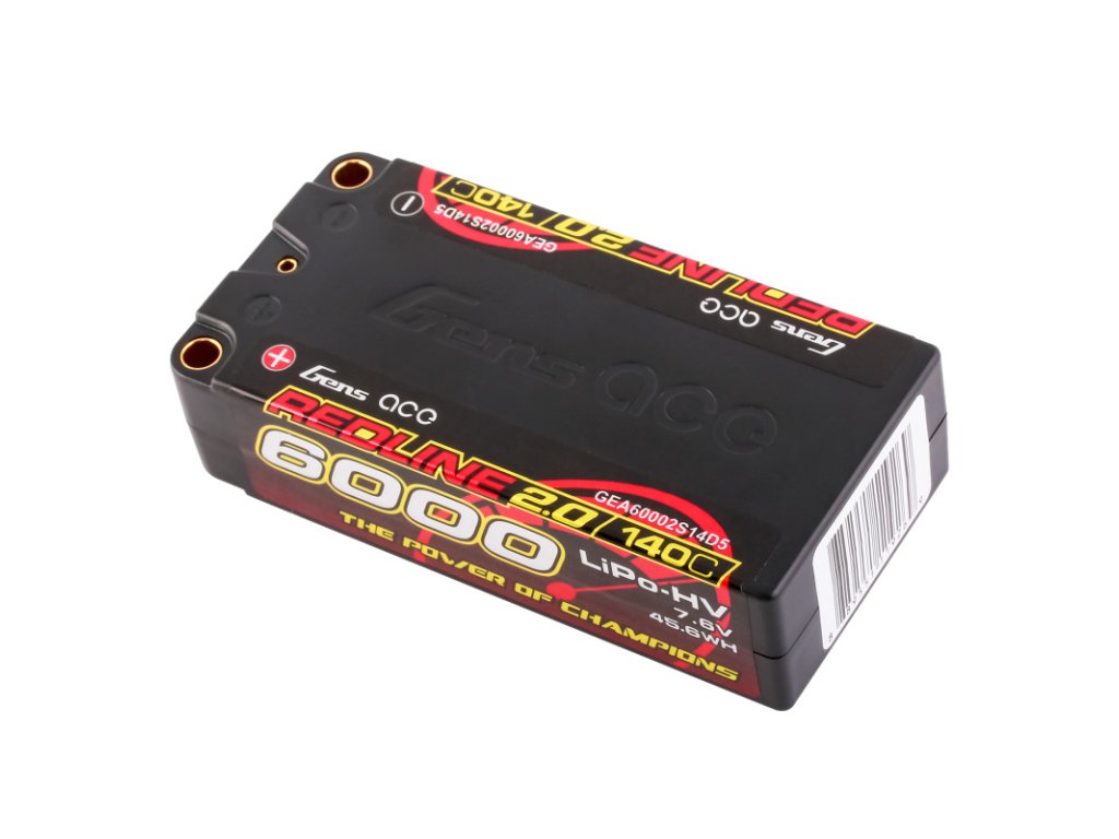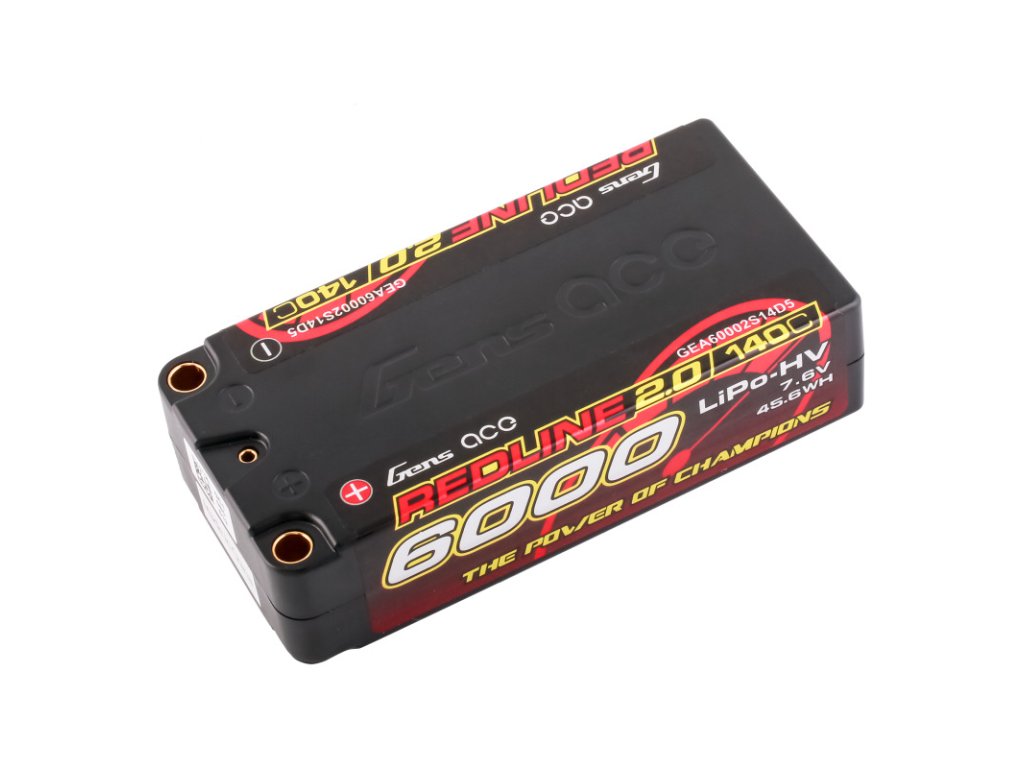 - Gens Ace Redline 2.0 Series 2S 140C 6000mAh Hardcase LiPo Battery Pack, it's suitable for 1:10 Modify Offroad 1:10 F1 Class XRAY, TLR, Team Associated, Schumacher, Serpent, Kyosho, Infinity.